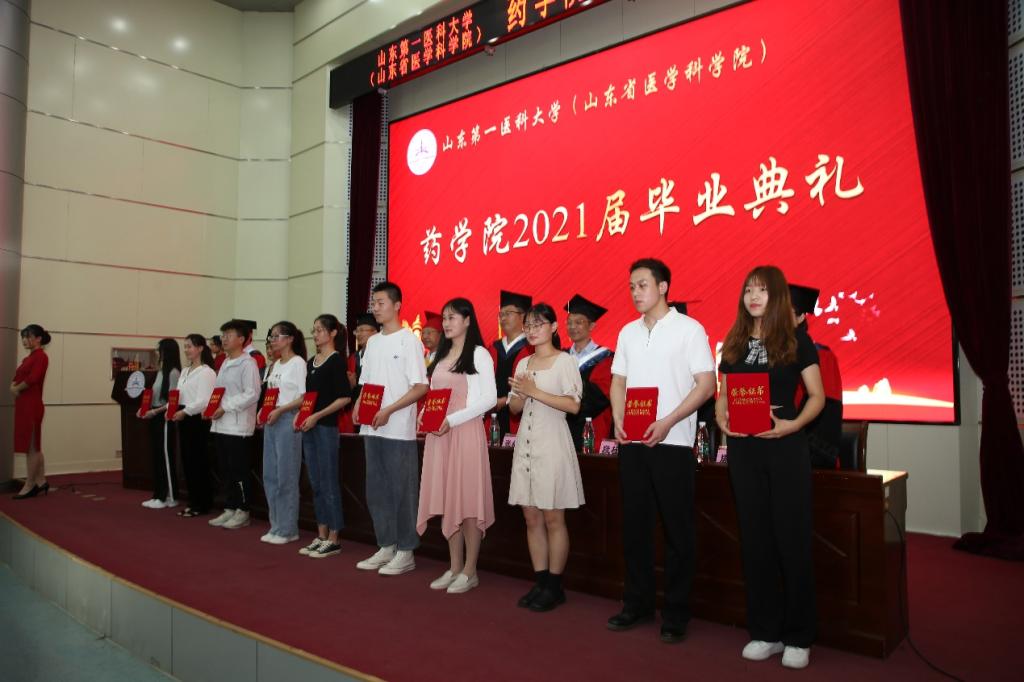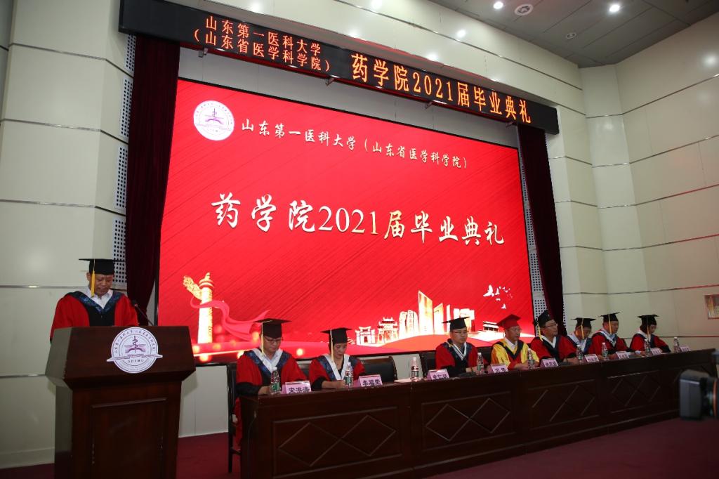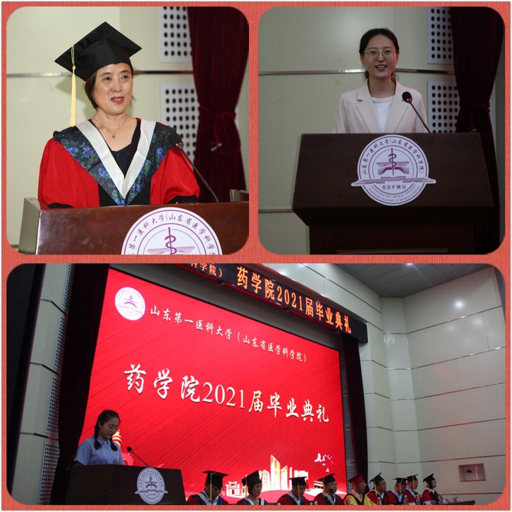 致辞结束后,药学院党委书记史仁玖宣读《关于表彰2021届省级、校级优秀毕业生的通报》,学院共有50名毕业生被评为省级和校级优秀毕业生。
