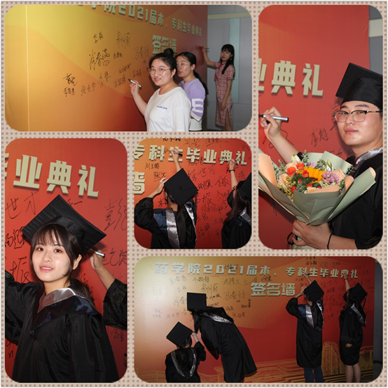 毕业典礼在雷鸣般的掌声和《毕业歌》歌声中落下帷幕,毕业生纷纷在毕业纪念墙上留言并合影留念,留下在母校这珍贵和难忘的最后一刻!