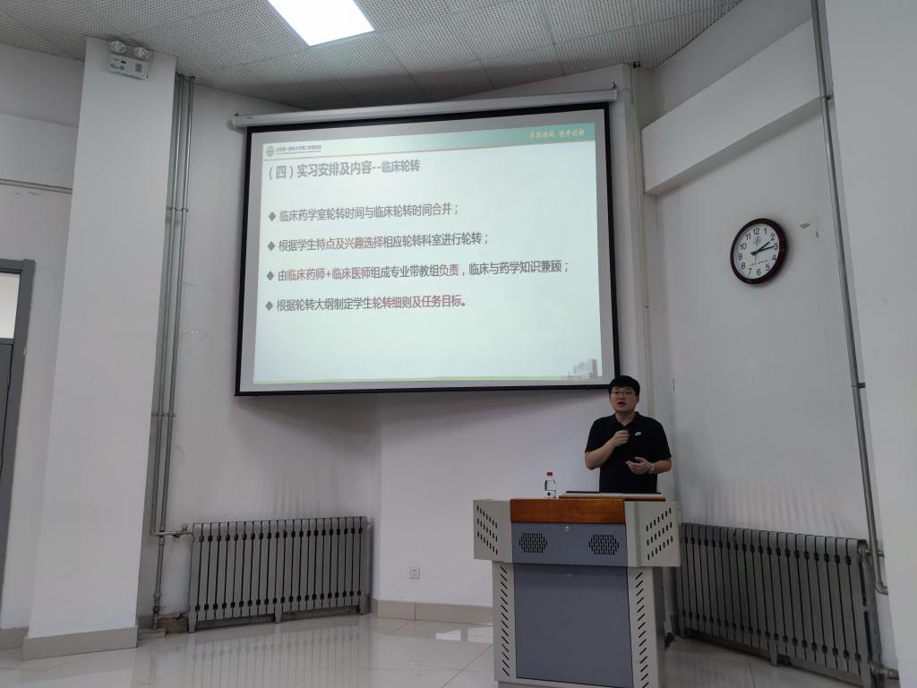 6月25日下午,药学院邀请山东第一医科大学第二附属医院临床药师培训基地临床药师耿彪为2022届临床药学本科专业学生做了《临床药学学科简介及本科生实习培训要求》的报告,他从第二附属医院基本情况、临床药学学科发展、临床药师规范化培训、临床药学本科生实习要求等四个方面进行讲解,提出了具体的实习要求,为临床药学学生走进医院、在临床科室实习打下良好的基础。