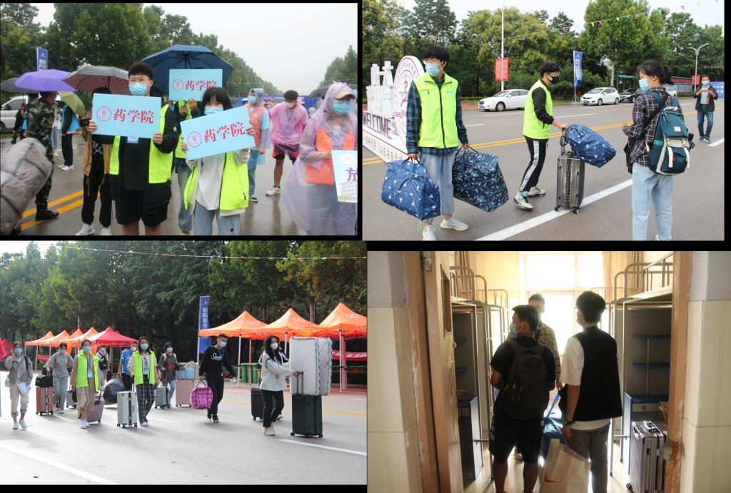 药学院报到处迎新工作人员认真核对新生信息,引导新生按流程报到,核查准考证、录取通知书等材料,安排宿舍,办理校园卡……一切都在有条不紊地进行着。