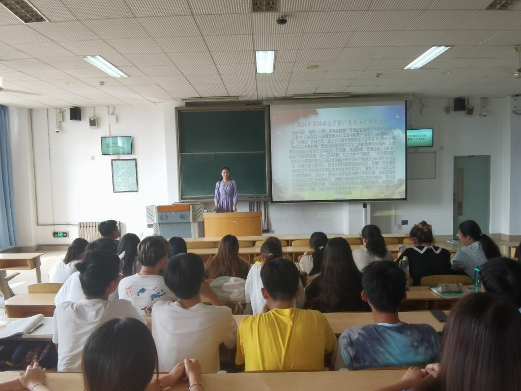 为深入贯彻落实习近平总书记等中央领导同志关于做好推广普及国家通用语言文字工作的重要指示精神,认真落实全国和全省语言文字会议工作部署。9月10日下午,2020级中药学本科1班在教学南楼C2001召开了“普通话诵百年伟业”主题班会,会议由班级学习委员徐海洋主持,全体同学参加班会。