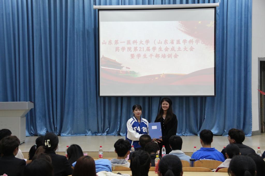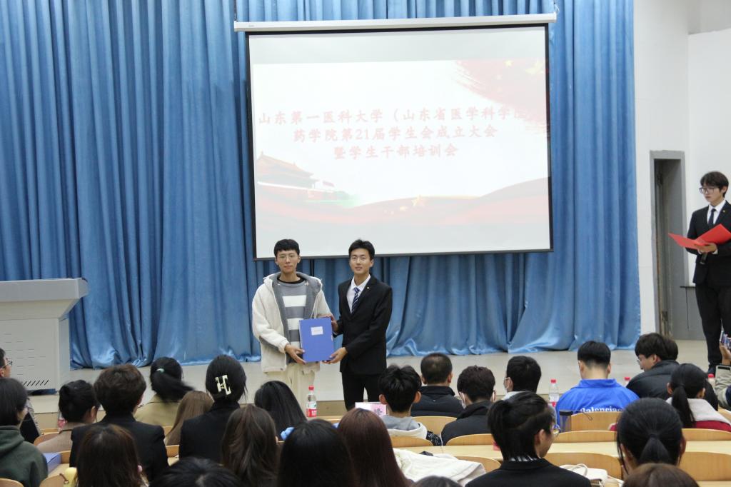 青春正当时,不予负流年,转眼又到一年换届时。为保证学生会下一步工作的正常开展,不断提升学生的自我管理、自我服务的能力。10月20日晚,药学院在物理楼报告厅举行第20届学生会换届大会暨第21届学生会成立大会。此次大会由第21届学生会秘书处于金浩主持,药学院党委副书记宋洪涛、学工办主任乔峰、贾伍员、团总支副书记彭曼曼参加大会,两届学生会成员参加大会。
