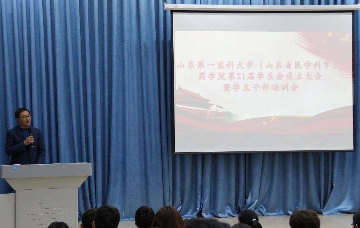 最后,宋洪涛发表致辞与寄语。他强调,学生会是在校(院)团委和药学院党委的双重领导下,在团总支的具体指导下工作的学生自治组织,是全院学生进行自我服务、自我管理、自我教育的重要组织,是学院联系全体学生的桥梁和纽带;同时,肩负的责任是引导广大同学努力做到德智体美劳全面发展,成为中国特色社会主义事业的合格建设者和可靠接班人。他对全体学生会成员提出五点期望与要求:一是要树立远大理想,提高政治站位;二是增强团队协作意识,努力成为沟通顺畅、敢于担当、执行坚决的新一届学生会;三是牢记职责和使命,不怕吃苦、甘于奉献、时刻服务广大同学,主动关心帮助周边的同学,发扬“大事讲原则、小事讲风格”的精神,争做识大体、顾大局的优秀学生干部;四是要科学规划时间,抓好学习的主责主业,修身笃行,孜孜以求,要通过学习和工作提高本领,做到全面发展;五是要讲政治、讲纪律、讲原则、讲团结,以身作则,杜绝官僚主义、形式主义,摒弃不良习气,促进学院及班级的安全稳定和良好发展。