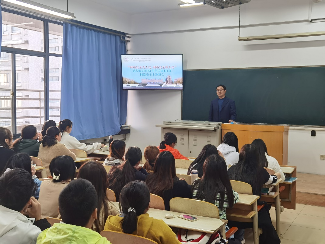 为深入贯彻落实习近平总书记对国家网络安全宣传周作出的“四个坚持”重要指示,牢固树立“没有网络安全就没有国家安全”的忧患意识,引导广大学生认清网络安全形势,了解安全风险,提升应对能力。药学院各班级在近期开展了“网络安全为人民,网络安全靠人民”的主题班会。