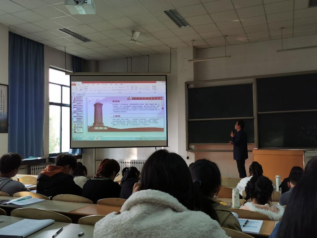 宋洪涛首先带领同学们学习了《中华人民共和国宪法》第五十五条:“保卫祖国,抵抗侵略是中华人民共和国每一个公民的神圣职责。依照法律服兵役和参加民兵组织是中华人民共和国公民的光荣义务。”和习近平总书记给南开大学8名新生入伍大学生的回信精神,不仅激发了同学们的家国情怀,体现国家对于大学生参军入伍的重视,还赞扬并肯定了南开学子响应祖国召唤参军入伍,把爱国之心化为报国之情的高尚精神,为广大有志青年树立了优秀榜样。