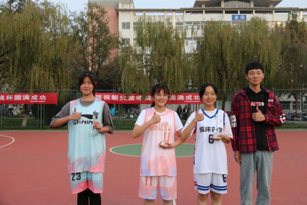 比赛结束后,主持人宣布比赛成绩,颁布获奖名单,本次2021级新生篮球挑战杯由临床药学“啊对对队”篮球队拔得男生5V5篮球赛头筹,“鲁迅说的队”斩获女生3v3篮球赛以及男女生定点投篮赛一等奖。在欢呼与呐喊中,各队队员与嘉宾拍照留念,本次比赛圆满落下帷幕。