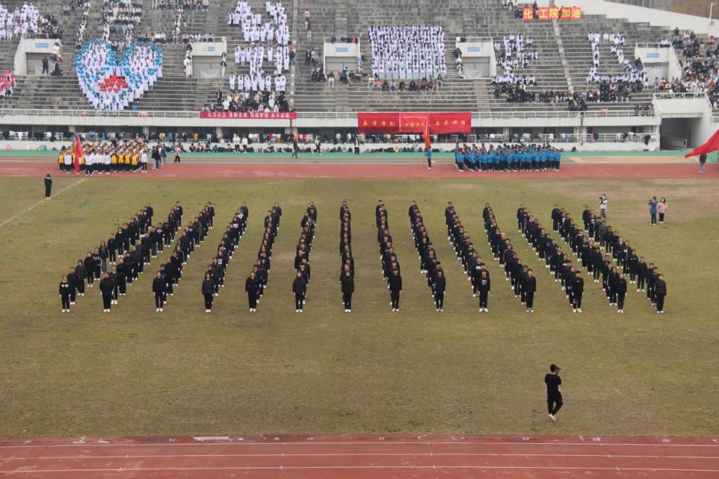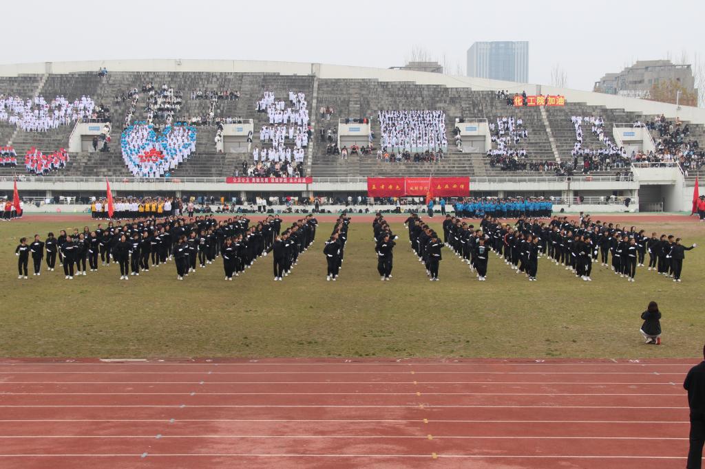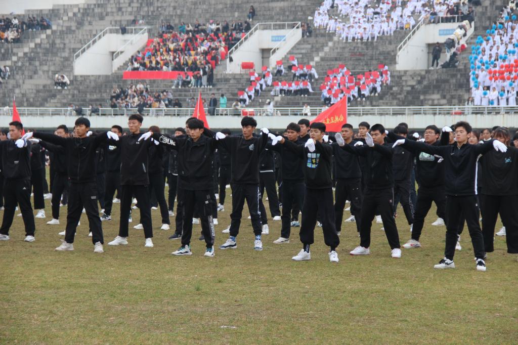 所有学院比赛完毕,全校武术操参赛选手们齐跳舞蹈《少年》,药学院队员们动作欢快娴熟,步伐中充盈着矫健之美,洋溢着青春气息。