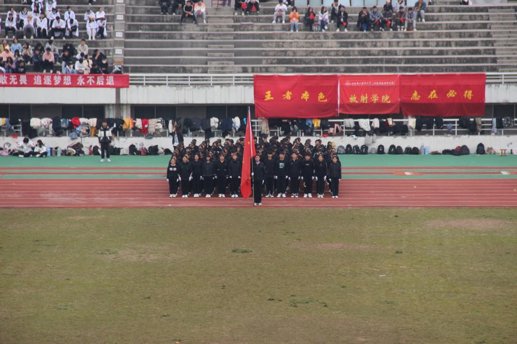 下午2时,药学院武术操代表队和观众方队整顿完毕,训练有素地站在各自候场地等待比赛的开始。代表队队员们整齐的服装,坚毅的面容,不仅表现出药学院同学们斗志昂扬的精神状态,也预示着队员们必将通过默契的配合取得好成绩。