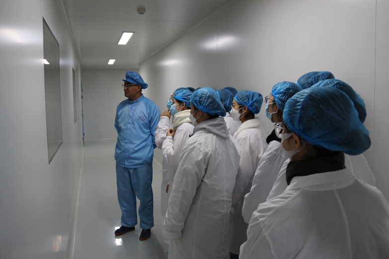 到达目的地后,京卫制药人事经理刘超对老师和同学们的到来表示热烈欢迎,并引导师生做好相应的防护工作,严谨认真地为师生做好进入车间的示范。接下来,每班同学分为两队,依次由工作人员带领参观了液体车间和固体车间。液体车间里,同学们见到了一台台精密的仪器、先进的设备,薄师傅为同学们认真地讲解了机器的使用方法及注意事项,寥寥数语便将药品的生产过程讲述得清晰明了、通俗易懂,使同学们对制药流程有了大致认识。而另一边黄师傅带领同学们在固体车间也开展了生动形象的一课,黄师傅幽默诙谐的讲解方式引得同学们兴致盎然,饶有兴趣地了解了人流通道与物流通道等制药相关知识。通过两位师傅的详细解说,同学们深刻体会到什么是“纸上得来终觉浅,绝知此事要躬行”,同时也在脑中构筑了课本理论知识与生产实践的桥梁。最后,刘经理为同学们安排了一场座谈会,通过座谈会同学们了解了京卫制药的发展概况,更加深了对京卫制药“尽责、创新、追求卓越”企业精神的理解。