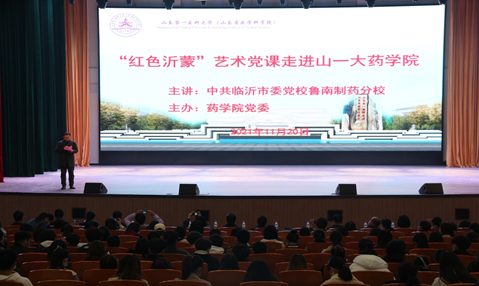 为更好的落实习近平总书记“学党史 悟思想 办实事 开新局”的指示,深化党史学习教育,提高入党积极分子的思想觉悟和党性修养,由药学院党委主办的“红色沂蒙”艺术党课走进山一大药学院活动暨2021年第二期入党积极分子培训班开班仪式于11月20日在长城路校区大学生活动中心成功举办。此次党课由党委副书记宋洪涛主持,中共临沂市党校鲁南制药分校沂蒙精神宣讲团担任主讲。