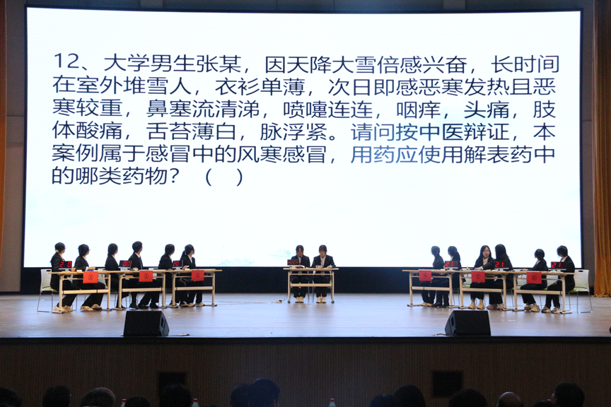 “世间百草聚天地之灵气,中医经典集古人之智慧”——为传承和弘扬中医药文化,汲取和巩固传统中草药知识,树立同学们的文化自信与自豪感。11月29日晚,药学院在长城路校区大学生活动中心举办“瑞阳制药杯”第十六届中草药知识竞赛。学生工作部副部长刘玉、药学院院长张继国、党委书记史仁玖、副院长周延萌、党委副书记宋洪涛及运动医学与康复学院、口腔医学院团总支老师、药学院部分专业老师和全体辅导员出席大赛,李福荣、高红莉、孙立彦、苏雪慧、岳路路五位老师担任比赛评委。