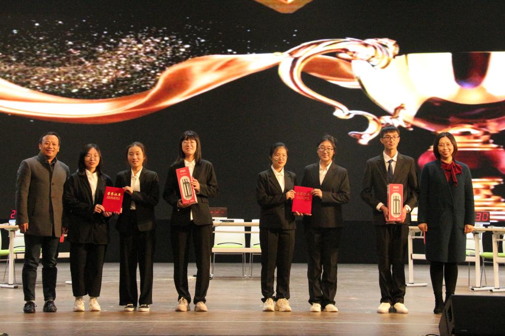 经过一番龙争虎斗,“划水不用桨”队最终脱颖而出,荣获本次大赛一等奖,“孙思邈说得”队和“青黛队”获得本次大赛二等奖,“蒙的都”队、“紫菀”队、“向阳而生”队获得本次大赛三等奖。伴随着颁奖音乐,领导和老师们为各代表队颁奖并合影留念。