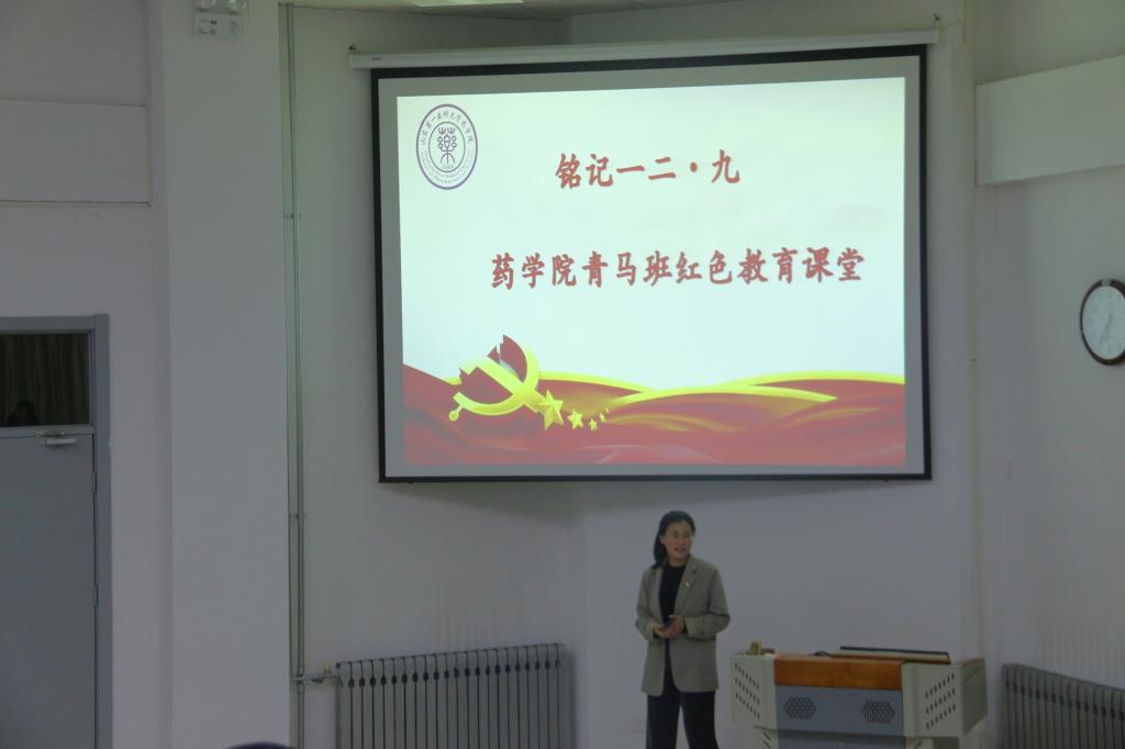 “回首三五当年,霜林荡雪,起万千勇士”。为重温历史,纪念一二九精神,激发同学们的爱国热忱,弘扬爱国主义精神,增强同学们的责任感与使命感。12月9日晚上,药学院团总支在医学综合实验楼A132教室开展青马班“铭记一二·九”红色教育课堂,本次活动由药学院团总支彭曼曼老师主持,药学院青马班全体学员参加活动。