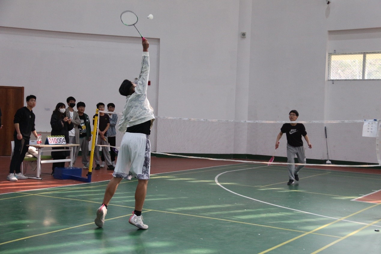 下午三点,紧张的单打决赛与男女混双比赛开始了!选手们摩拳擦掌,跃跃欲试。他们细心总结了上午比赛中出现的问题,扬长避短,进攻与防守的水平大大提高,好球频现,精彩纷呈!男女混双比赛中,战况焦灼,高潮迭起,选手们你来我往,后场正手高远球、网前搓球、近网扑球、正手推球等娴熟的动作组合与精彩的配合,展现着青春的别样风采,也赢得了场外观众阵阵掌声。在几轮精彩的对抗之后,比赛在阵阵欢呼中落下帷幕。