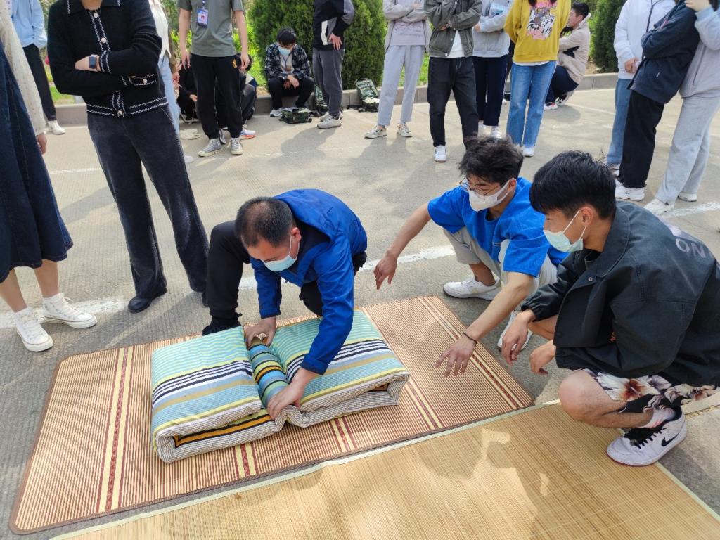 活动开始,由我校强军社一名退役复学同学向大家演示标准的军被叠法,平铺、划线、折叠、扯角、修边,原本平整的被子被叠成了方方正正的豆腐块,这短暂的几分钟体现出了一名军人良好的生活习惯。我院的几名学生也对叠被子进行了练习和演示,通过叠被子号召在校同学疫情期间也不能放松个人内务整理和宿舍的整洁卫生,良好的自律习惯能够促进同学们学业的成功。紧接着,安文向同学们讲解了2022年大学生应征入伍的报名条件、入伍流程、优惠政策和优秀退役复学学生先进事迹,并向同学们发起参军入伍的号召,鼓励同学们投笔从戎、保家卫国,实现军旅梦。