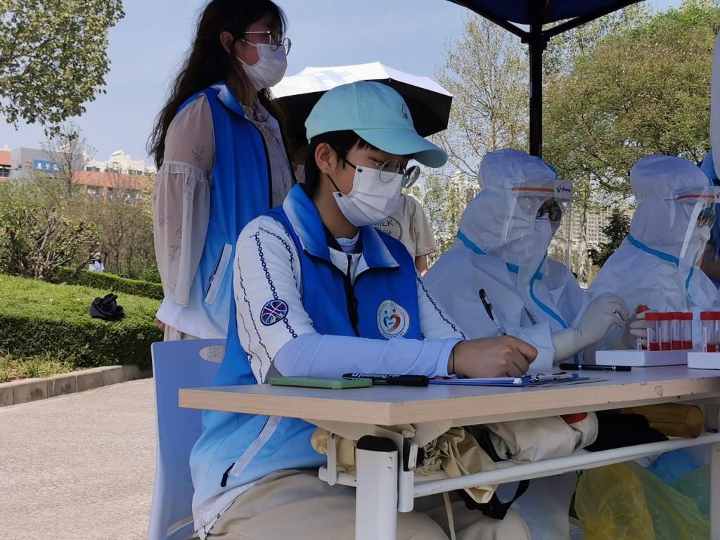 “在防疫的这段日子里,我很荣幸可以作为药学院的一名疫情防控志愿者协助医护人员完成核酸抽测工作。在这几次的志愿服务中,我主要负责同其他的志愿者一起在F位点管理秩序、帮助同学们完成信息注册和协助医护人员抽测核酸。虽然近期的温度比较高,但每位志愿者都认真完成本职工作,每天的核酸检测都能快速有序地进行。通过这次志愿者工作,我体会到了医护人员的不易,他们在这么热的天气里依然穿着厚厚的防护服为同学们做核酸,同时我也体验到了作为志愿者的收获和快乐!”