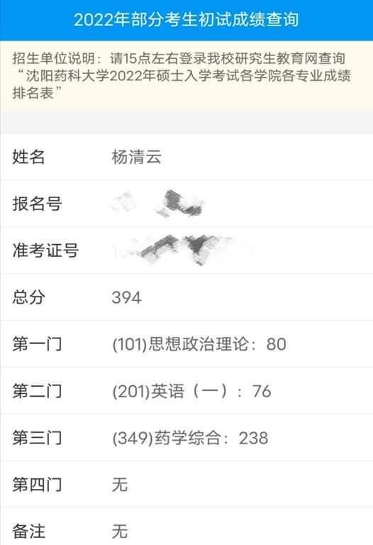 我不太擅长背书,所以一开始就没有选择考研考五大药的学校,选择考沈药有几个原因:一是信息公开透明,在正式报名结束之前会发布两次报考情况给考生作参考,大家可以根据报考人数以及自己学习情况来决定所要报考的专业;二是初复试成绩都会公布排名,尤其是初试排名,对于确定自己是进复试还是需要调剂还是很重要的;三是沈药611/349专业课考试都是客观题,也就不存在所谓的压分情况,只要好好准备肯定可以考出自己的实力。除此之外,有一些针对沈药的辅导机构也会不定时开办一些公开课或者初、复试经验交流会,对于一些不擅长搜索信息的同学还是很有帮助的。