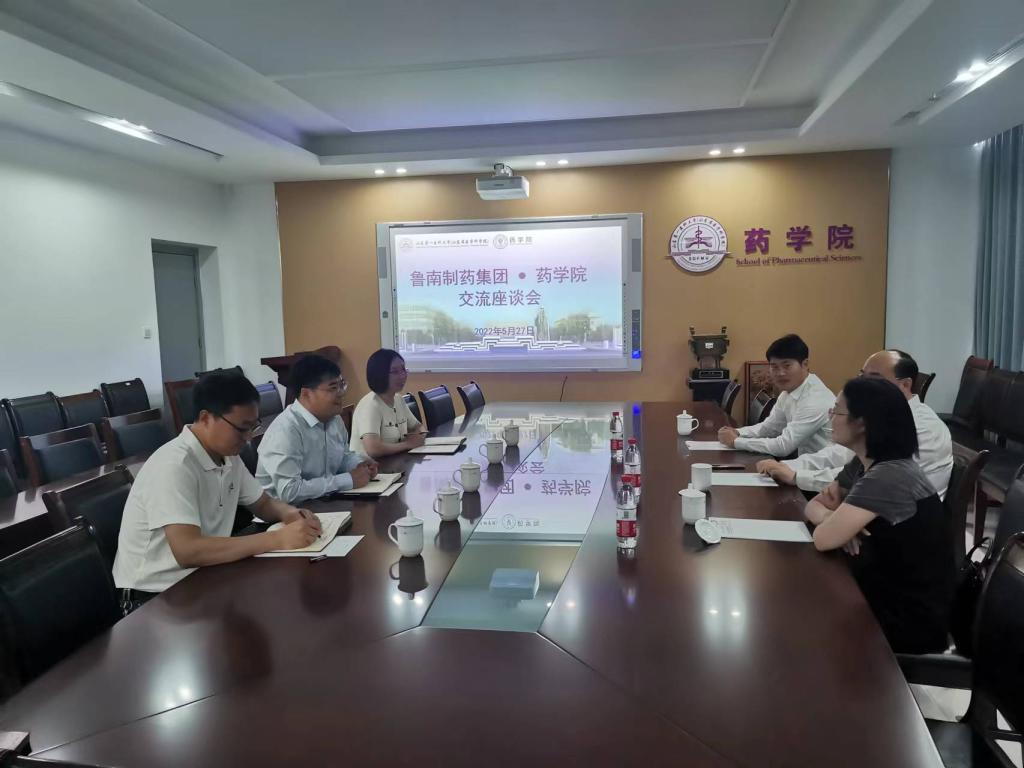 活动开始前,药学院常务副院长汪海洋、副院长周延萌、党委副书记宋洪涛与鲁南制药集团的程国良、宋祥云、郭永帅进行了亲切交流,双方就科研合作、成果转化、研究生和本科生培养、师生交流等校企合作方面的问题进行了探讨和交流。