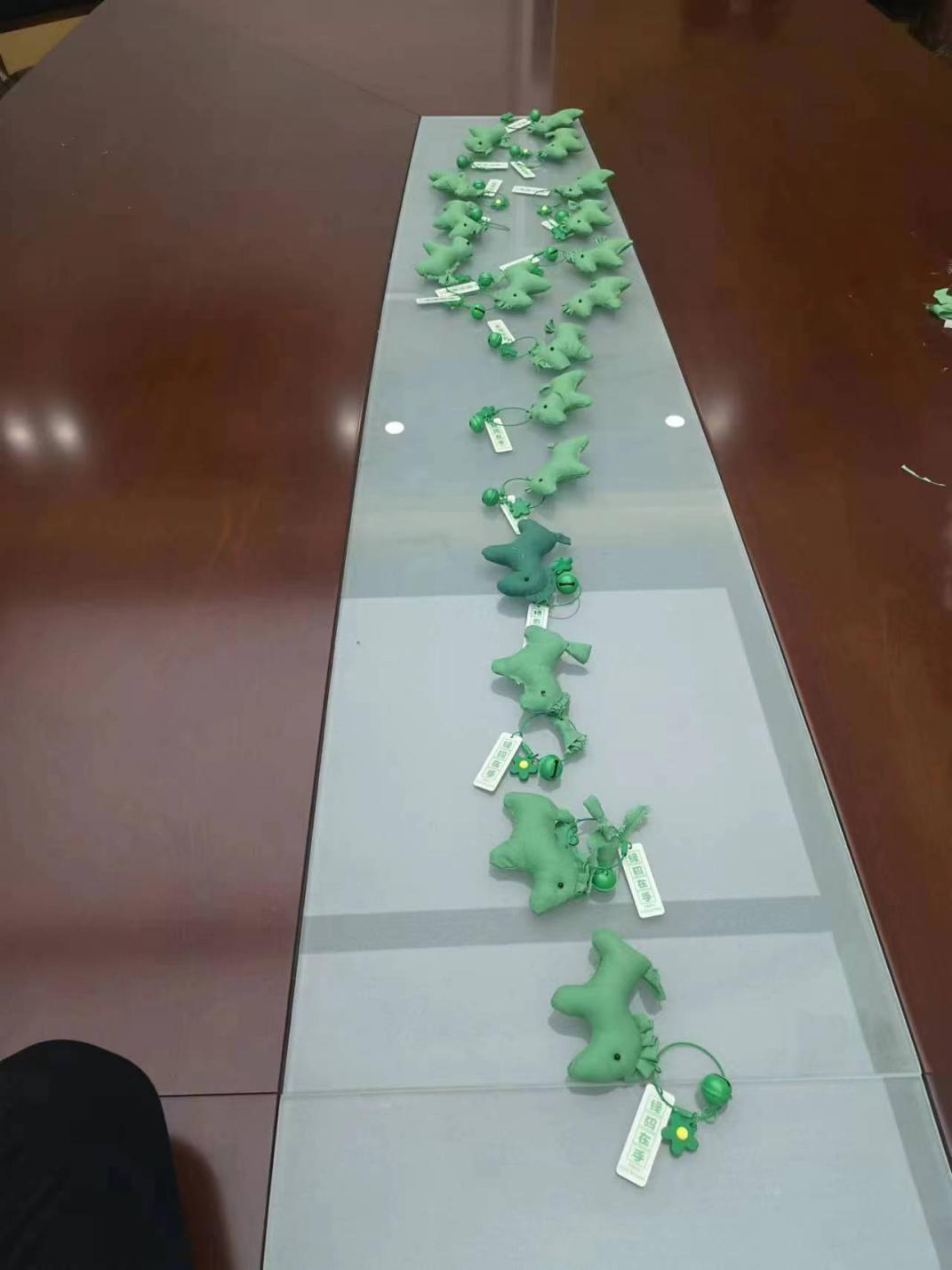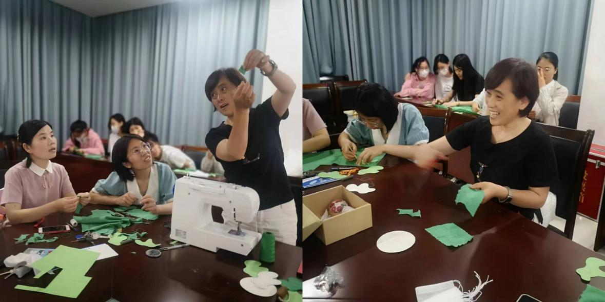 为保证活动的顺利开展,李福荣老师提前为大家挑选了绿码钥匙扣、彩绳、丝线、填充棉等挂饰配件,实验室曹娟老师从药用植物园采摘艾叶粉碎制成香料粉,所需原材料一应俱全。活动中,在李福荣老师的示范和培训视频的引导下,大家一边聊着端午习俗,一边穿针引线缝制香囊袋,塞香料……,按照步骤有条不紊地进行香囊制作,忙的不亦乐乎。最后,一个个造型独特,针脚细密,沁人心脾的“绿码”香囊新鲜出炉。