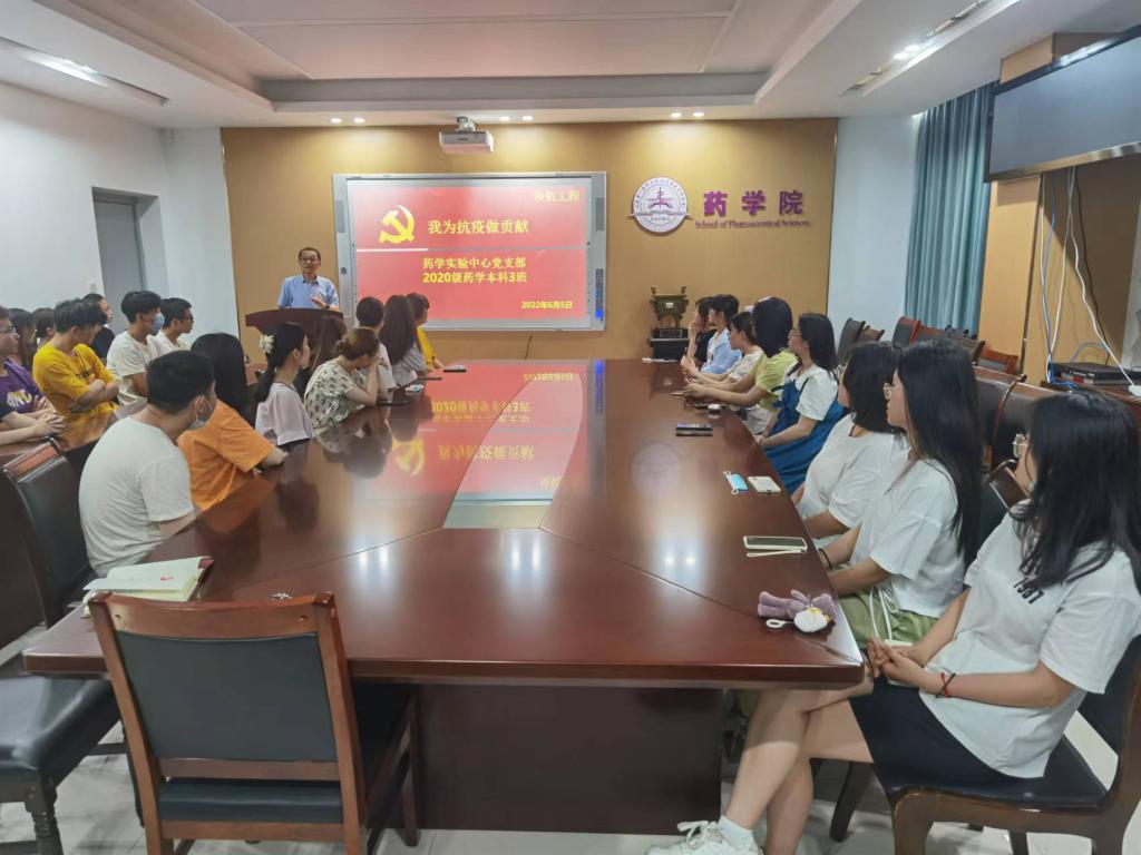 为充分发挥“领航工程”引领青年学生的作用,响应校(院)党委深入开展“领航工程”活动。6月5日,药学院药学实验中心党支部与2020级药学本科3班全体同学举行了“我为抗疫做贡献”主题交流会,会后共同观看了首部抗击新冠病毒的疫情电影《最美逆行》。