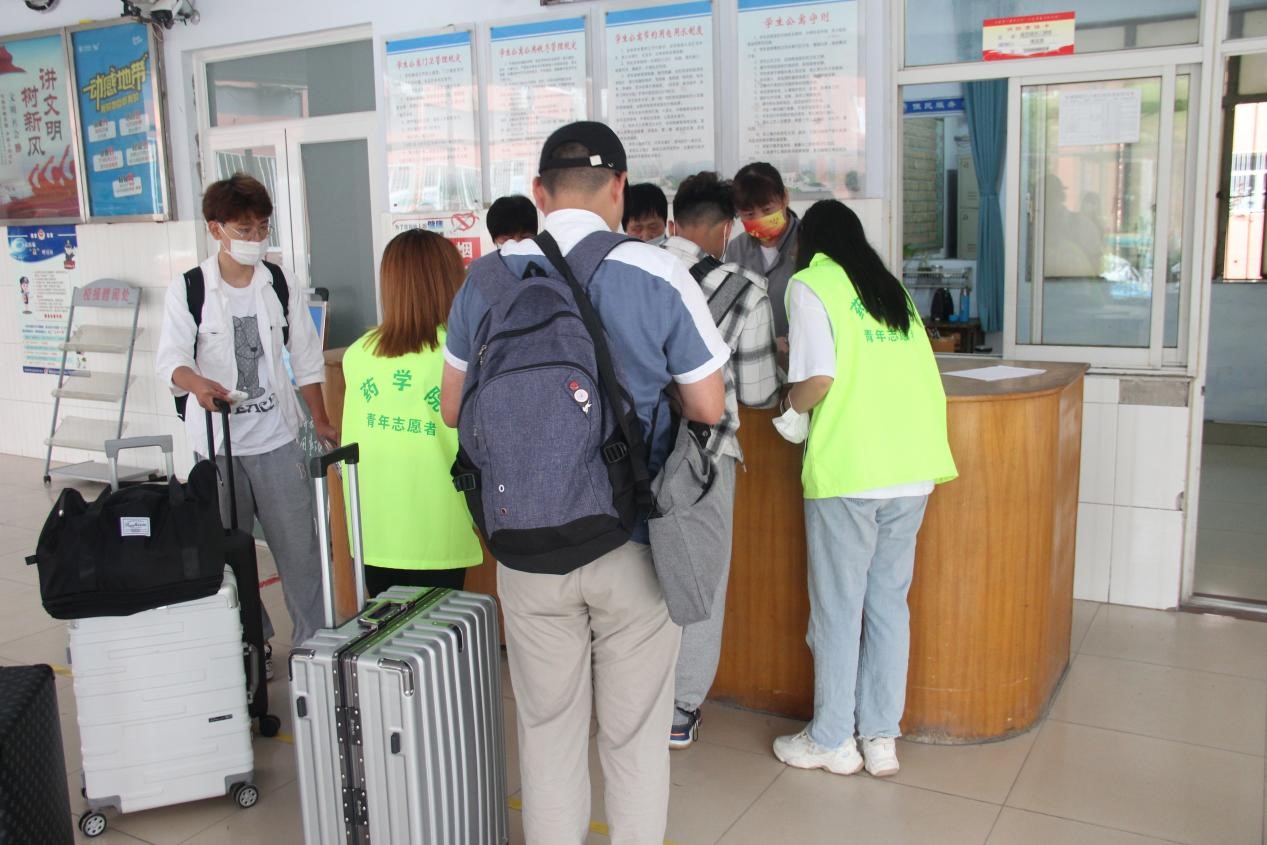 药学院新生报到处工作人员认真审核新生信息,引导新生按照流程报到,收取准考证、录取通知书、7天健康摸排情况表等材料,并为新生们安排宿舍,办理电子校园卡,耐心解答新生同学的提问,报到完成后,志愿者们帮助新生搬运行李至宿舍,每项工作都有条不紊地开展,迎新秩序十分有序。