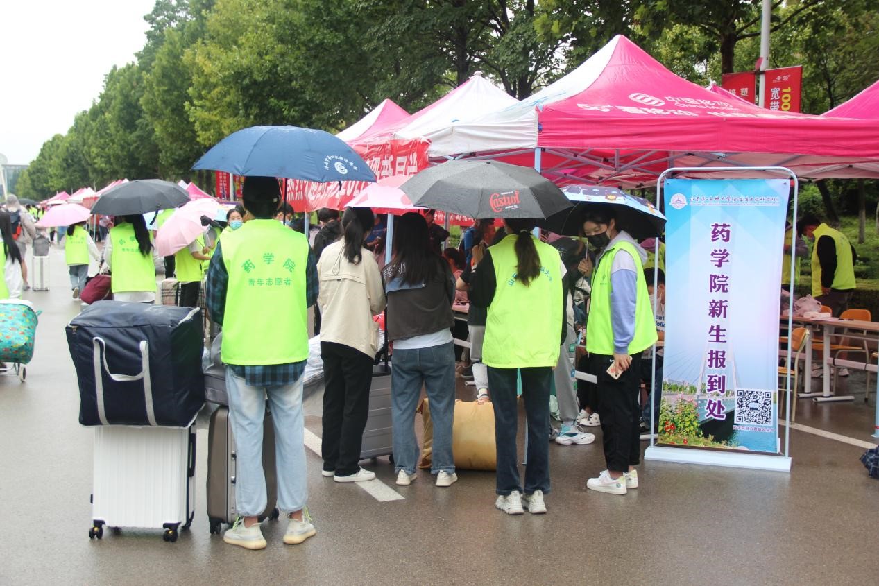 暑退九霄净,秋澄万景清。转眼又是一年迎新时,一大批莘莘学子自五湖四海汇集山一大,开启了他们全新的逐梦之旅。8月27、28日,药学院全体辅导员、学生会工作人员和药学院志愿者服务队队员们在长城路校区东方大道新生报到处迎来了药学院400余名省内外新同学,纵使阴雨绵绵,但药学院志愿者们接待新生的热情却难以抵挡。一张张崭新的萌新面孔,也令山一大校园在金秋时节更添青春底色。