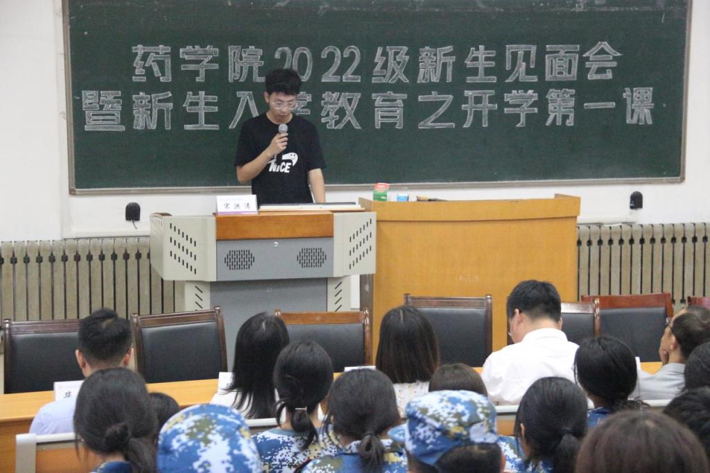 为了让2022级新生尽快适应大学生活,明确未来职业规划,了解校(院)和药学院的基本情况,加强师生交流互动。8月31日晚上,药学院在南教学楼C1014教室举办了2022级新生见面会暨新生入学教育之开学第一课。在热烈的掌声中,药学院院长张继国、党委书记史仁玖等全体班子成员、系(实验室)主任、科级干部和辅导员与全体新生集体见面。活动由学院党委副书记宋洪涛主持,2022级全体新生参加活动。