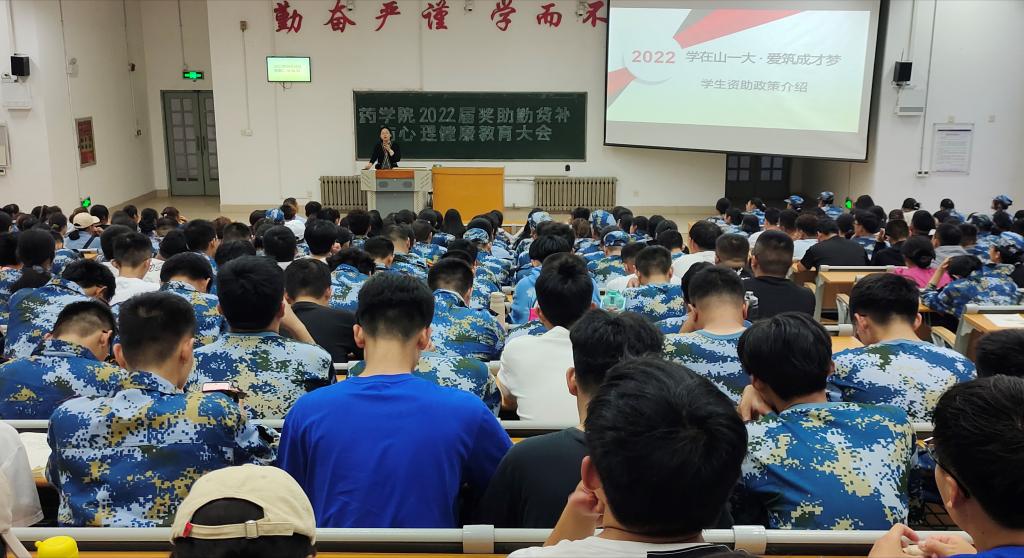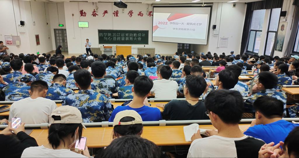 为激励新生树立远大理想、提升自我,帮助生活困难的学生更好地完成学业,勉励新生奋发图强,使新生充分了解国家和校(院)的“奖助勤贷补”多元资助体系。8月30日晚上,药学院在教学南楼C1014教室举办资助政策宣传教育大会。校(院)学生工作部副部长刘玉为同学们作报告,大会由2022级年级主任贾伍员主持,新生辅导员及2022级全体新生参加大会。