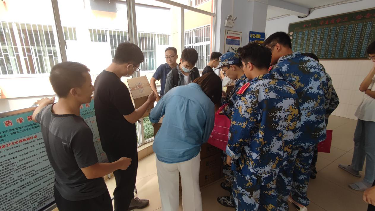 发放现场,药学院副院长段桂运、周延萌,党委副书记宋洪涛及全体辅导员向各班级发放爱心月饼,各班班长按照由大一到大四的顺序排队有序领取,现场秩序井然,十分和谐。宋洪涛还向同学们送上中秋祝福,表达了节日问候和美好祝愿。