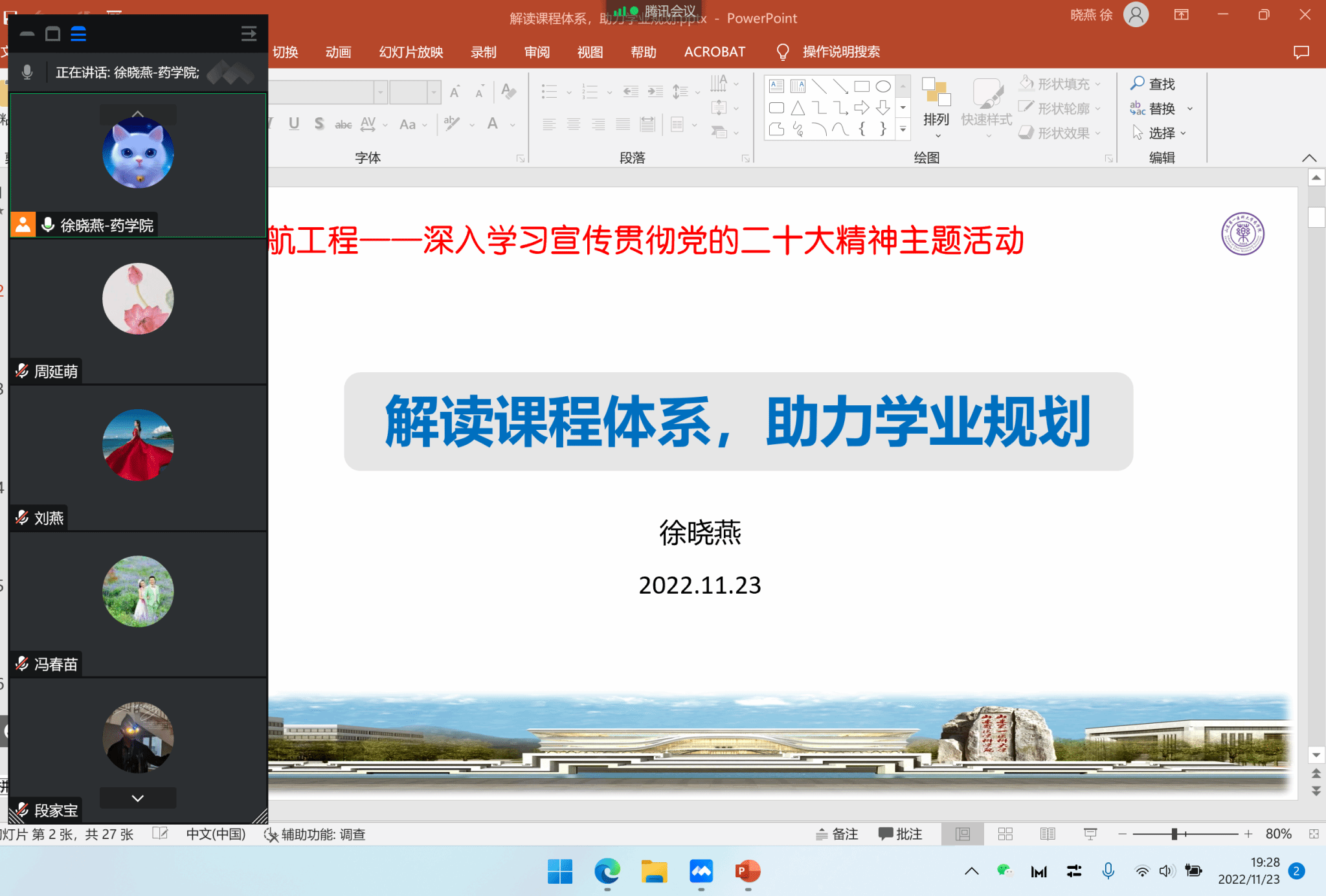 希望同学们在今后的生活学习中能够认真学习贯彻党的二十大精神,努力做好专业规划,成为优秀的药学人,为祖国的医药事业贡献自己的力量。药学院临床药学系党支部全体党员,2022级临床药学专业学业班主任们及全体学生参加了本次主题活动。