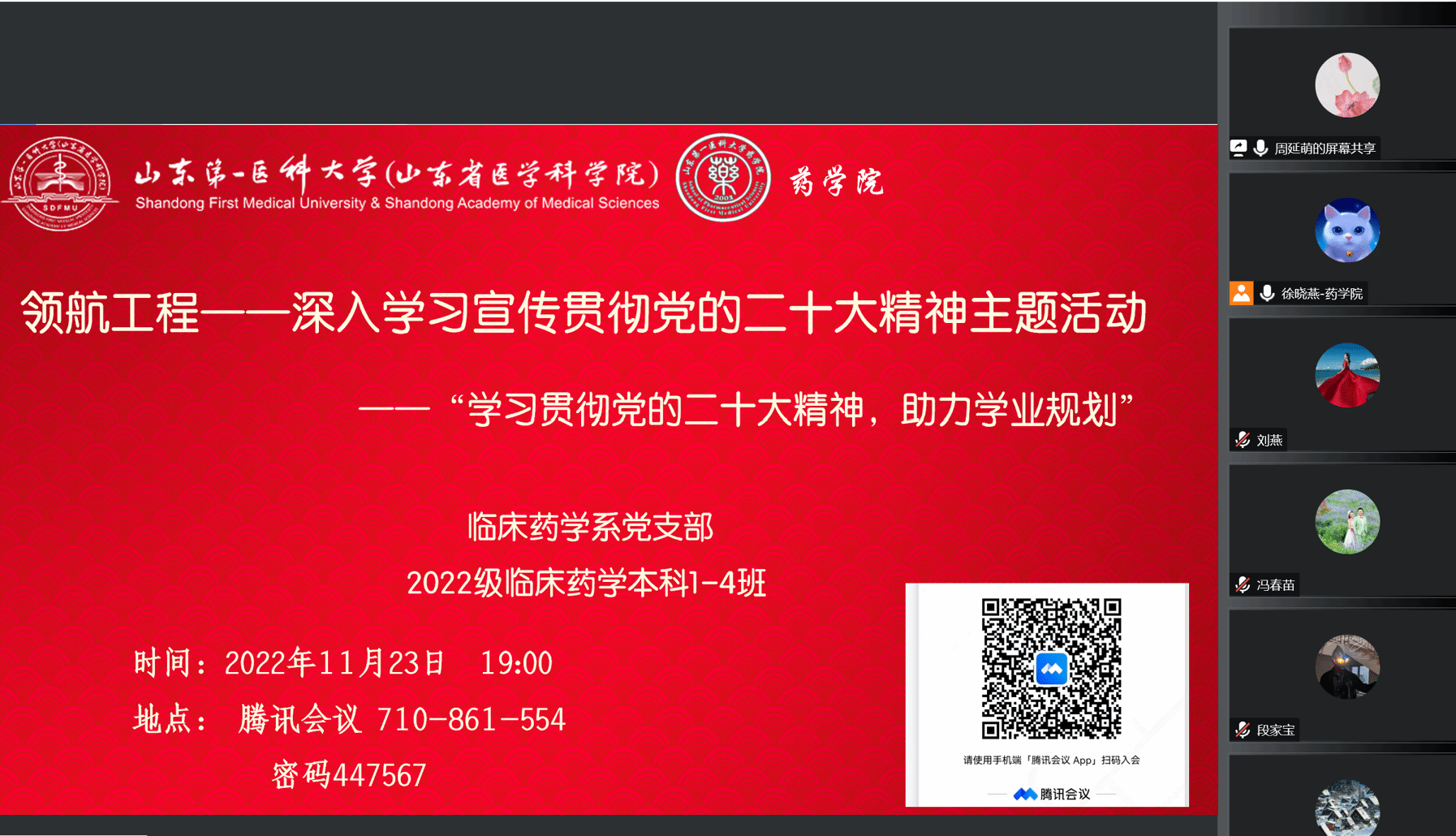 为深入学习贯彻党的二十大精神,助力学生学业规划,发挥教工党支部的引领作用,近日,药学院临床药学系党支部线上与联系班级举办“深入学习宣传贯彻党的二十大精神”主题活动。