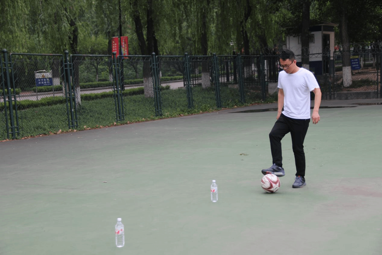 本次活动共设置投篮、足球障碍射门、一分钟跳绳和一分钟踢毽子四个比赛项目以及跳大绳、篮球“保龄球”、板羽和羽毛球四项娱乐项目。