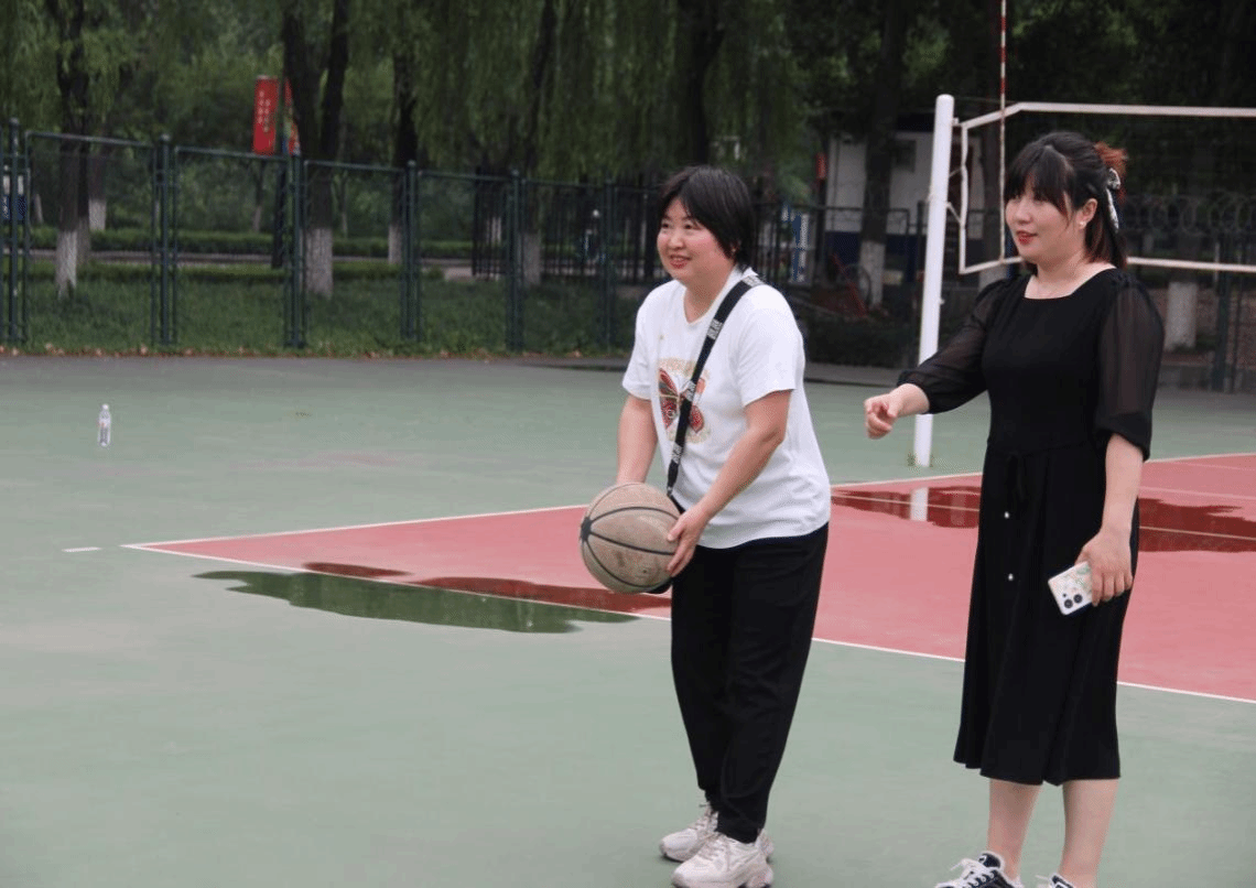 屈膝、举手、跳跃、投射,在一阵阵欢呼声中,老师们接力完成了一个又一个的投篮任务,篮板下轻盈活跃的身姿让我们见识到了辛勤园丁们三尺讲台外能文善武的另一面。