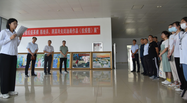 6月3日下午,安全保卫部第一党支部联合档案馆(校史馆)举办陈绘兵、阴其玲夫妇系列油画《抗疫图》作品展,并与学院2021级制药工程本科1班开展以“致敬抗疫英模,传承青春力量”为主题的领航工程活动。校(院)党委委员、副校(院)长马鲁豫参加活动。