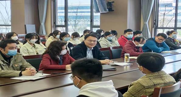 支部书记杜成林介绍了支部建设情况以及与会党员教师的科研成果,强调2022年将落实校(院)党委有关部署要求,扎实推进实施“领航工程”,通过与班级结对子,充分发挥党员专家的领航作用,切实帮助和解决同学们遇到的困惑与难题,实现党员教师和大学生成长成才的同促进。