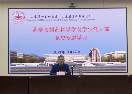 10月17日下午,校(院)党委委员、副校(院)长马鲁豫到药学与制药科学学院参加学生党支部党史专题学习,并做党史学习专题辅导。学院部分辅导员老师、全体学生党员和部分入党积极分子参加活动。