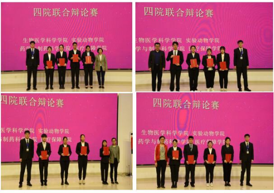 经过评委现场打分,最终决出一、二、三等奖及优胜奖。药学与制药科学学院、生物医学科学学院代表队分别荣获一、二等奖,实验动物学院代表队荣获三等奖,医疗保障学院代表队荣获优胜奖;来自药学与制药科学学院的解一品和医疗保障学院的杜鑫两位同学荣获“最佳辩手”。