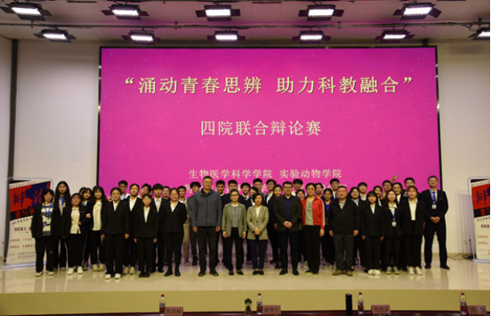 古有卧龙诸葛舌战群儒,今有群英荟萃慷慨陈词。5月11日,山东第一医科大学药学与制药科学学院联合生物医学科学学院、医疗保障学院、实验动物学院举办的“涌动青春思辨,助力科教融合”辩论赛决赛在生科楼报告厅圆满落下帷幕。此次辩论赛邀请生物医学科科学院党委书记潘继红、药学与制药科学学院副书记吴忠玉、医疗保障学院副书记张秀梅、实验动物学院副书记乔晶担任评委,辅导员和二百余位同学观看了比赛。