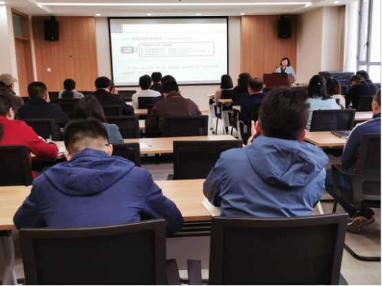随后,副院长牟艳玲做了关于“聚焦立德树人,加快推进本科教育高质量发展”的工作汇报,从高等教育改革相关政策、第五轮学科评估内容、教学机构考核内容等方面讲述了推动本科教育高水平发展、建设高水平大学、建立一流学科的路径和要求,详尽阐述了本院教学工作的任务和下一步打算。牟艳玲借用《道德经》中“天下难事必作于易,天下大事必作于细”的名言勉励学院全体教师将教学工作做细、做小、做实,夯实自身专业基础,提高整体教学水平,为全面提升学院教学质量贡献力量。
