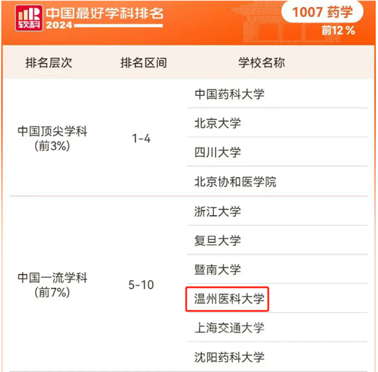 • 前7%!温医大药学学科软科“中国最好学科排名”再进一步
