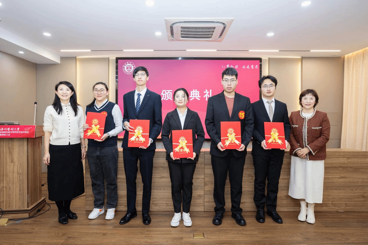 颁奖环节,与会嘉宾共同为获奖学生颁发荣誉证书。