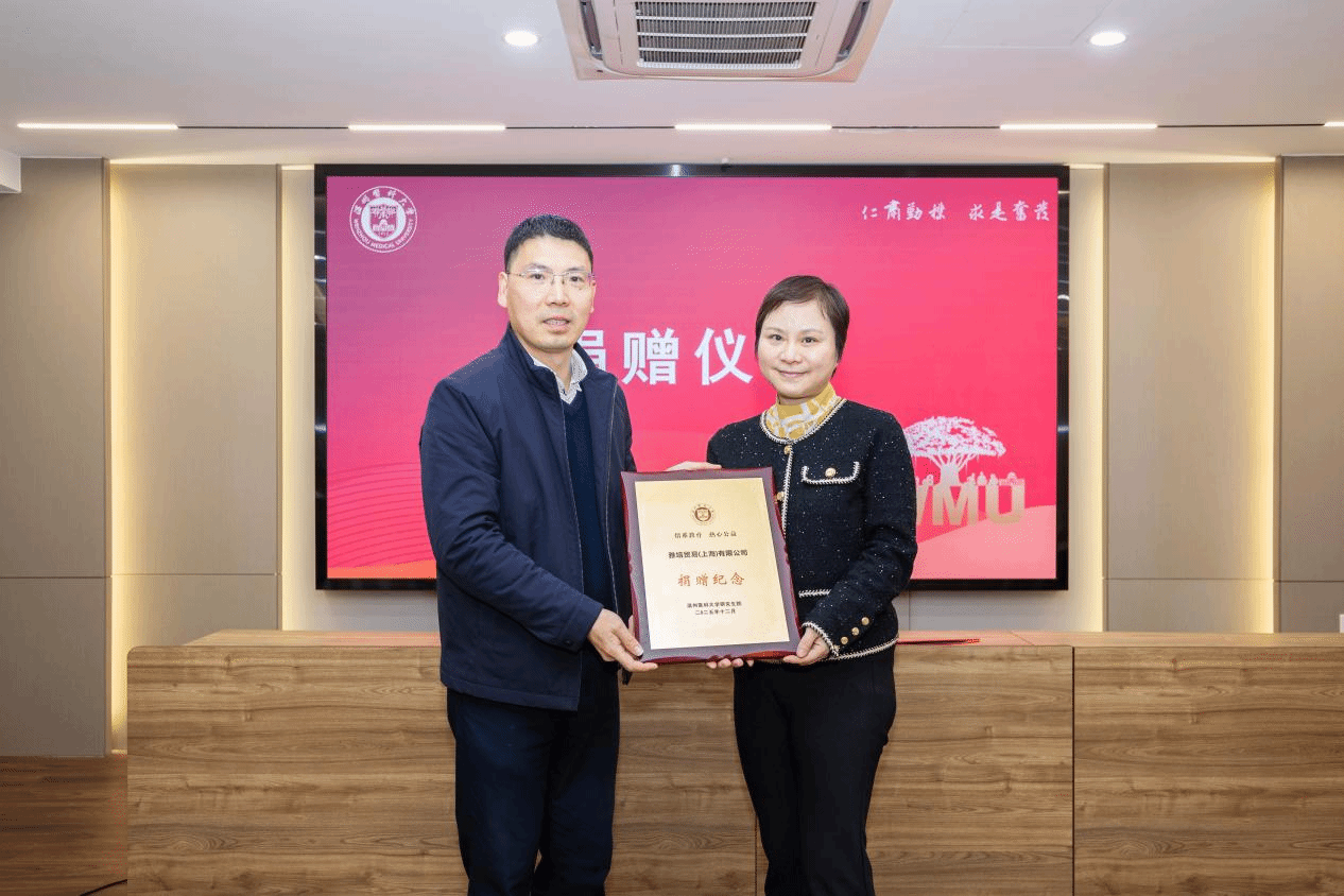 表彰大会上,俞林伟代表学校向雅培贸易(上海)有限公司授予捐赠证书,感谢企业对学校教育事业的关心与支持。俞林伟表示,雅培医学营养奖学金的设立,不仅为优秀学子提供了宝贵的成长激励与发展平台,更搭建起校企协同育人的坚实桥梁,为我校营养相关学科的人才培养与科研创新注入了强劲动力。