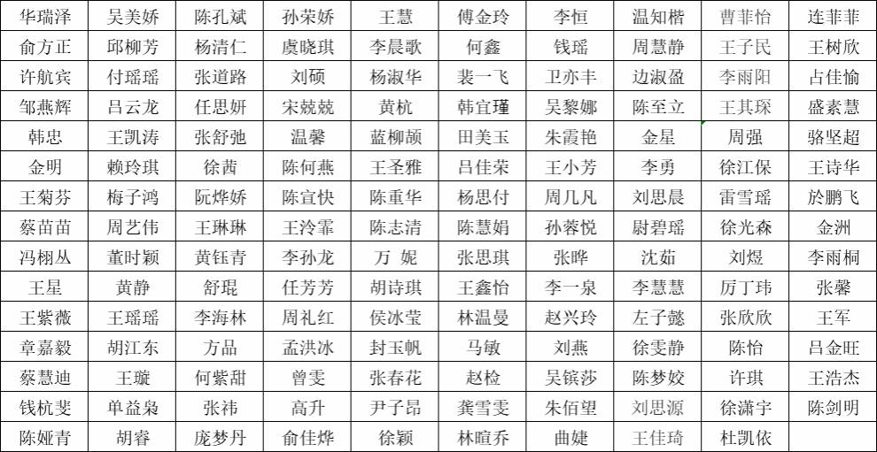 根据《温州医科大学优秀研究生干部评选方法》,经个人申请、学院初评、党委研工部联评,决定授予华瑞泽等149人为2022-2023学年温州医科大学优秀研究生干部荣誉称号。现将名单公布如下(排名不分先后):