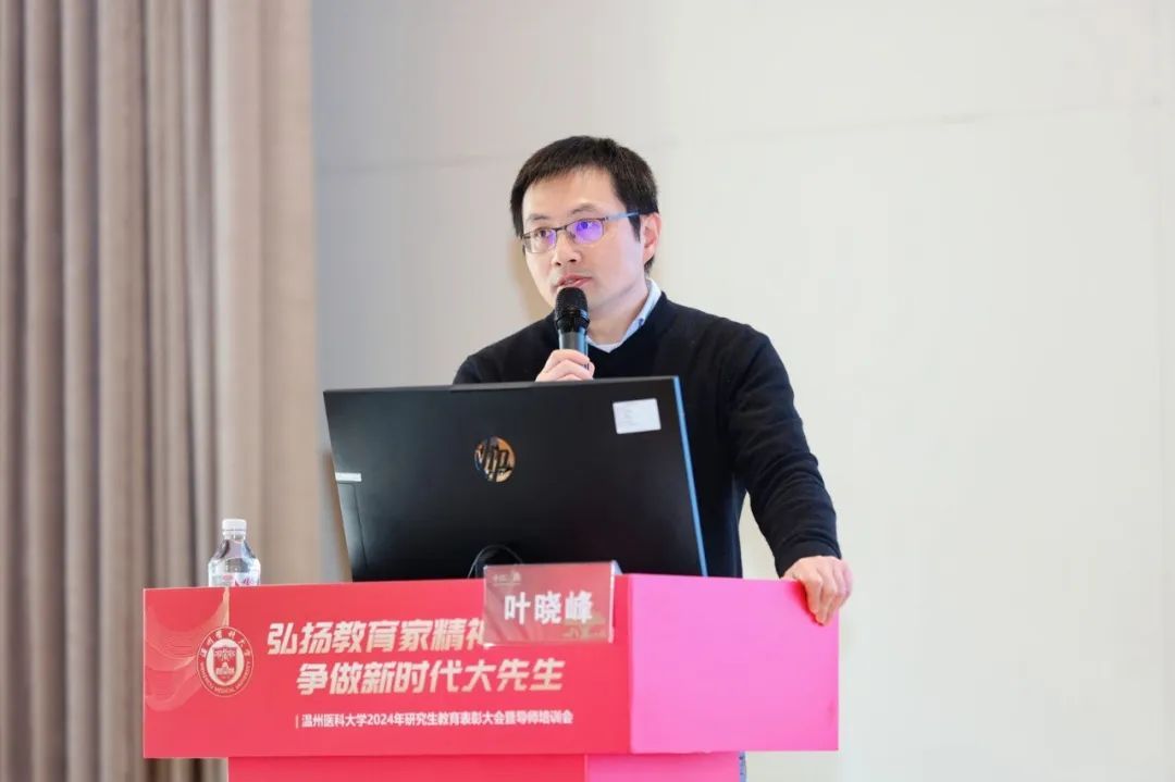 1月4日,学校在茶山校区国际交流中心举行“弘扬教育家精神,争做新时代大先生”温州医科大学2024年研究生教育表彰大会暨导师培训会、管理骨干研修班。校领导金胜威、章成斌、李军红、林丽出席会议。学校相关职能部门负责人,研究生教育战线专家代表、各培养单位负责人、研究生导师、管理骨干等共700余人参加会议。